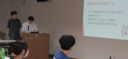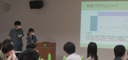 副院長に専門の分野である呼吸器科領域における内容を「研修医がおさえておくべき呼吸器診療の実際」と題して講演いただきました。九嶋先生から研修医の皆さんへのエール!「初期研修の2年間は長いようでとても短い。貴重な2年間をどう過ごす?後悔しない2年間を!まずは生き残る!辛い経験は必ず糧になる」